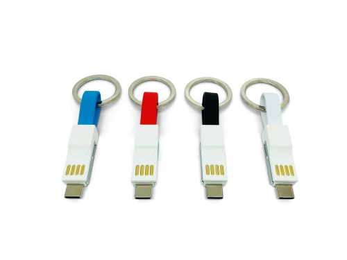 3-in-1 Keyring Charging Cable is the practical way to carry a charging cable with you on the go.Charge from any USB power source by lightning, USB-C or micro-USB dual tip with this fast charging speeds.Magnetically clips together making it easy to carry with you on your keys. Available in a wide range of standard colours.Split ring fitment included. Minimum of only 100pcs.