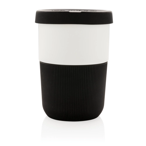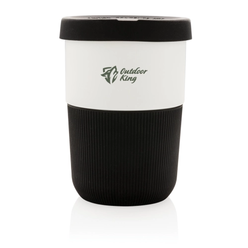 A sustainable alternative to traditional cups! Bringing style and practicality to your morning commute, this PLA coffee cup is ideal for transporting your favourite hot beverage. Manufactured from plant material (PLA), so not only stylish but also kind for the planet. Comes with a silicone grip and lid for your convenience. 100% melamine free. Capacity 380ml.