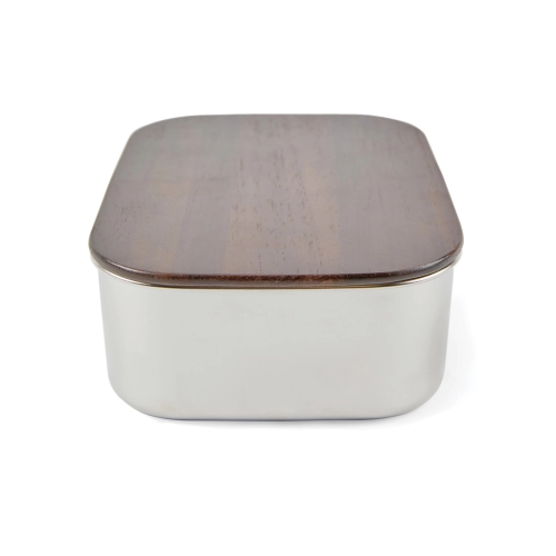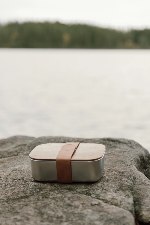 Ciro RCS recycled steel lunch box is a practical and eco-friendly lunch solution that is designed with care for both functionality and environmental awareness. The lid, made of FSC®-certified acacia wood, features a convenient PU strap with velcro closure, ensuring secure transport. Acacia wood is an organic material where variations in shade and colour are natural characteristics. With this lunch box, you can easily enjoy your meals while taking a step towards reducing the use of disposable containers and plastic. Certified by RCS (Recycled Claim Standard), RCS certification guarantees that the entire supply chain of recycled materials is certified. The total recycled content is based on the overall product weight. This product contains 39% RCS-certified recycled stainless steel. Easy to clean. Handwash only. Including FSC®-certified kraft packaging.