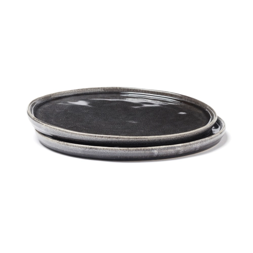 Set of two stoneware plates. Nomimono draws its inspiration from nature and the earth around us, creating this rustic range in natural earth tones where no two items are the same. Japanese meets Scandinavian, rustic meets modern. Collectibles for a down-to-earth and inspiring serving. Each item is handmade and unique. Every item is glazed three times to obtain the right kind of finish. Dishwasher safe.